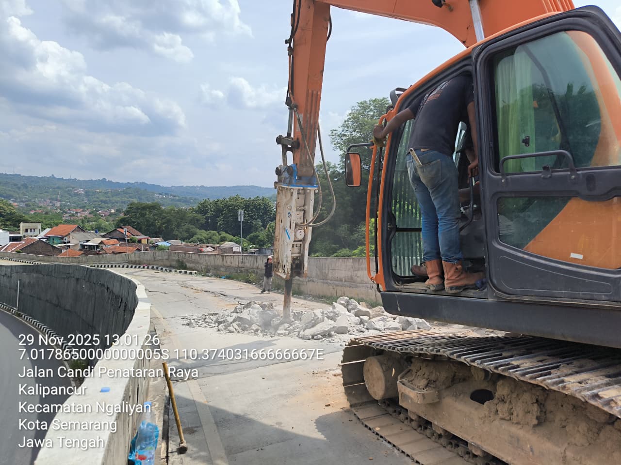 Semarang, DIGINDO | Upaya perbaikan infrastruktur di Kota Semarang kembali mendapat dorongan dari sektor swasta. PT Praba Mas Hill memperlihatkan sikap kooperatif melalui program Tanggung Jawab Sosial dan Lingkungan dengan ikut menangani kerusakan di Jalan Kolonel R. Warsito Soegiarto, kawasan Candi Penataran, Kalipancur.